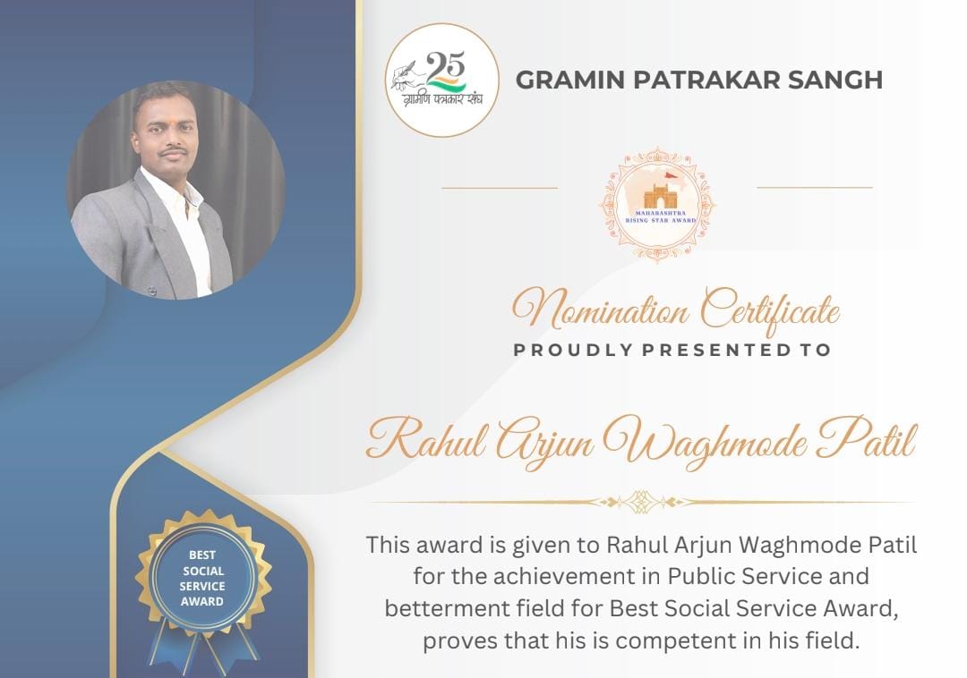आपल्या शुभेच्छा आणि कौतुकाच्या शब्दांनी माझ्या प्रयत्नांना नवी ऊर्जा आणि दिशा मिळाली आहे. ग्रामीण भागातील विद्यार्थ्यांना शिक्षण, स्पर्धा परीक्षा मार्गदर्शन, आणि सकारात्मक जीवनशैली याबद्दल प्रेरणा देण्याचे कार्य अधिक सक्षमतेने पुढे नेण्यासाठी हा सन्मान माझ्यासाठी प्रेरक ठरेल.